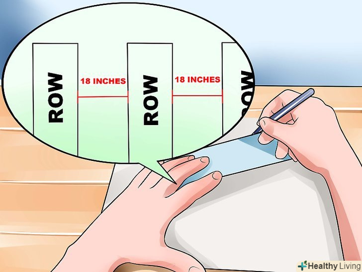 Складіть план городу. якщо ви збираєтеся вирощувати овочі на відкритому грунті, накидайте ескіз, де буде вказано розташування кожного виду рослин. Найчастіше овочі в городі висаджують рядами. При складанні плану враховуйте, що відстань між сусідніми рядами повинна становити близько 45 см (18 дюймів), щоб ви могли пройти між ними для прополки, поливу і збору плодів. При посадці овочів керуйтеся складеним ескізом [5] .