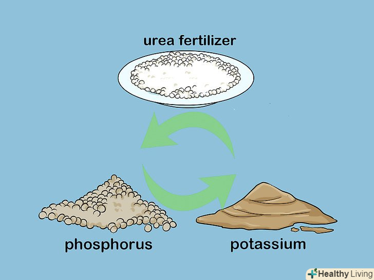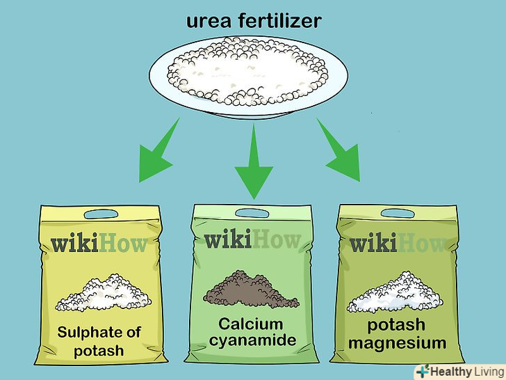 Змішайте сечовину з іншими добривами, щоб приготувати стабільну суміш. Сечовина забезпечить рослини азотом, але інші елементи, на зразок фосфору і калію, також необхідні для здоров'я рослин. Сечовину можна безпечно змішати і зберігати з такими добривами, як:- Ціанамід кальцію;