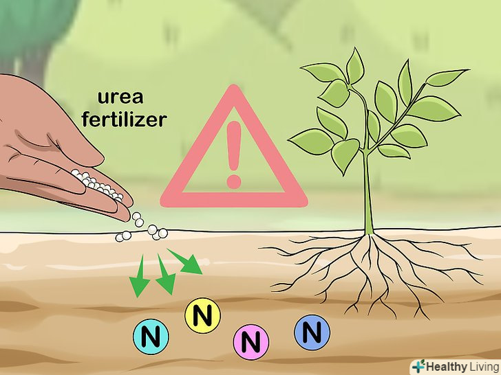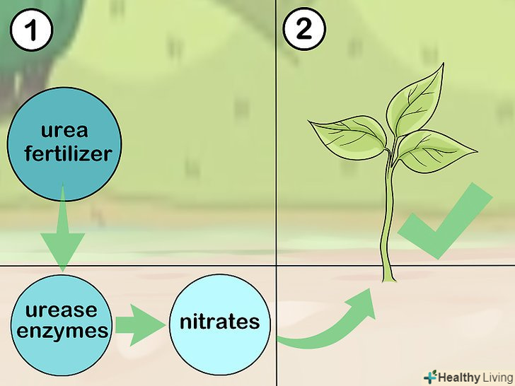 Використовуйте сечовину з інгібітором уреази перед посадкою. Уреаза — це фермент, який запускає хімічну реакцію, що перетворює сечовину в необхідний рослинам азот. Внесення добрива перед посадкою призводить до того, що велика кількість сечовини пропадає ще до того, як вона зможе принести користь рослинам. Інгібітор уреази сповільнить хімічну реакцію, затримуючи сечовину в грунті. [3]