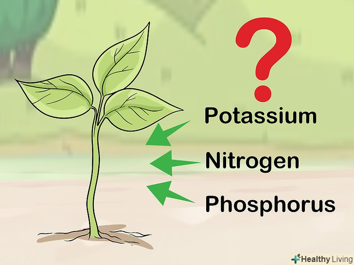 Визначте ідеальне співвідношення добрив. співвідношення добрив, або числа А-Ф-К — - це серія з трьох чисел, що показують, скільки азоту, фосфору і калію міститься в добриві. Якщо ви проводили аналіз грунту, то вже повинні знати ідеальне співвідношення добрив, яке допоможе заповнити дефіцит поживних речовин в грунті. [10]- Більшість садівників-любителів можуть знайти вже готові суміші в розпліднику або садівничому магазині. [11]