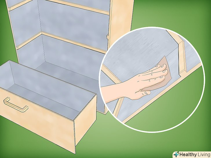 Підготуйте шафу. вийміть висувні ящики і, по можливості, напрямні. Зачистіть наждачним папером внутрішню поверхню і видаліть якомога більше фарби (якщо вона пофарбована). Покладіть шафа горизонтально, щоб задня стінка стала дном вашої грядки. Розташуйте його там, де буде розташовуватися грядка. [9]