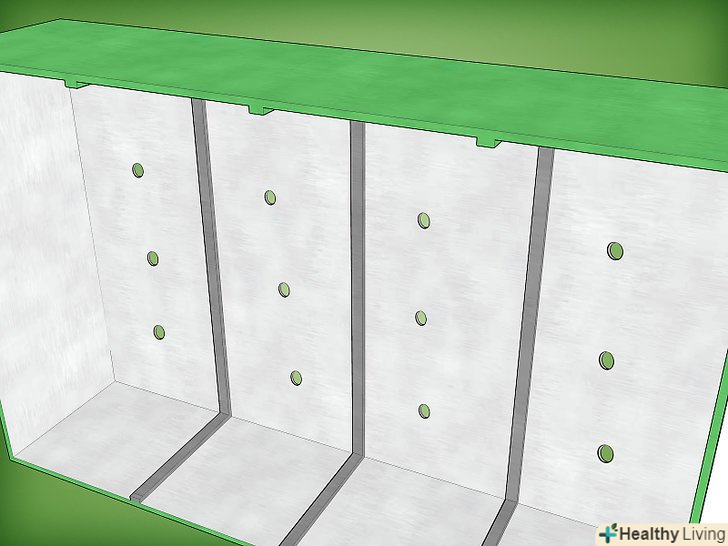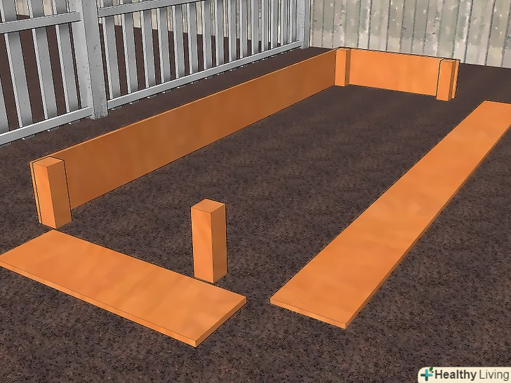 Випиляєте стінки. випиляєте дві дошки для довгих сторін грядки: їх довжина буде дорівнювати відстані від зовнішнього кута одного стовпчика до зовнішнього кута протилежного. Випиляєте дві дошки для коротких сторін: їх довжина буде дорівнювати відстані від зовнішнього кута одного стовпчика до зовнішнього кута протилежного плюс товщина дощок, з яких ви робите довгі сторони. [3]