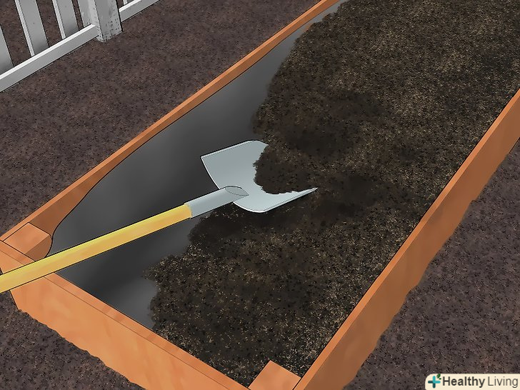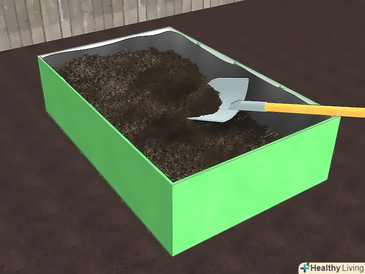 Наповніть грядку грунтом. наповніть грядку якісним грунтом і при необхідності внесіть добрива. Залиште приблизно 5 см до верхнього краю. [17]