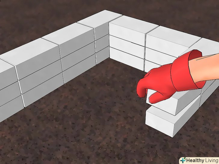 Викладіть цеглу шар за шаром. спочатку викладіть перший шар цегли за розміром грядки і переконайтеся, що вони щільно прилягають. Потім викладіть другий шар і так далі, поки не вийде стінка потрібної вам висоти. Виберіть таку кладку, яка вам більше подобається. [15]