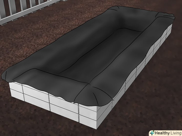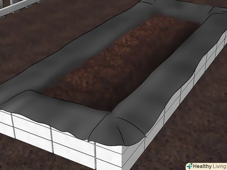 Застеліть грядку. застеліть цегляну основу товстою тканиною для захисту від бур'янів. Нехай тканина виходить за верхній край. Зайве ви відріжете пізніше. [16]