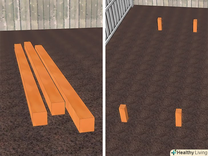 Знайдіть місце, де ви плануєте розташувати грядку. Коли ви визначилися з місцем, розмітьте периметр грядки і викопайте по кутах ямки для кутових стовпчиків. Стовпчики можна просто поставити на землю або ж поглибити на десяток сантиметрів або більше — як вам більше подобається. Просто сплануйте все заздалегідь. [1]Відповідь фахівцяПитанняКоли варто влаштувати підняту грядку?