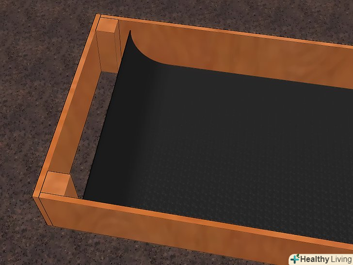 Покладіть захисну тканину. коли каркас грядки буде зібраний, застеліть його захисною товщиною 1,5 см, щоб захистити грядку від різних шкідників. Прикріпіть тканину по краях за допомогою степлера або шурупів. [5]