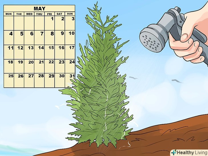 Доглядайте за саджанцем, поки він не буде готовий до пересадки. Різдвяні дерева не потребують великої кількості води після першого року. Поливайте розсаду протягом першого року з кінця весни до початку осені один раз в тиждень. [7]- Пропорція 2-2 є найкращим варіантом для розсади ялини і ялиці. Це означає, що рослина провело два роки на грядці з розсадою і два роки на відкритому грунті. Пропорція 2-0, де розсада знаходиться тільки на грядці два роки, підходить для саджанців сосни.