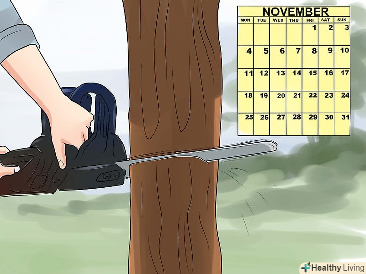 Зрізайте дерево в кінці осені. необхідно зрубати дерево в період, коли воно насичене вологою, як правило, в кінці осені, щоб голки як і раніше залишалися зеленими і пружними, коли дерево опиниться в закритому приміщенні. [18]