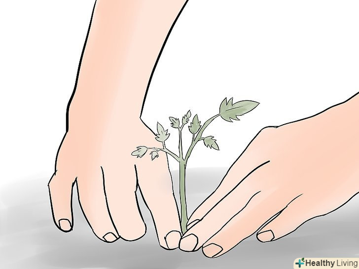 Посадіть розсаду. Садовою лопаткою виройте яму, досить велику, щоб розмістити кореневий куля кожного невеликого рослини. Розмістіть рослини в ямках і покрийте землею. Залишайте між помідорами відстань 18 дюймів (46 см).