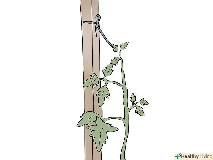 Зміцніть помідори за допомогою кілочків.- Втисніть в землю біля кореня кожного помідора дерев'яний або металевий кілочок.