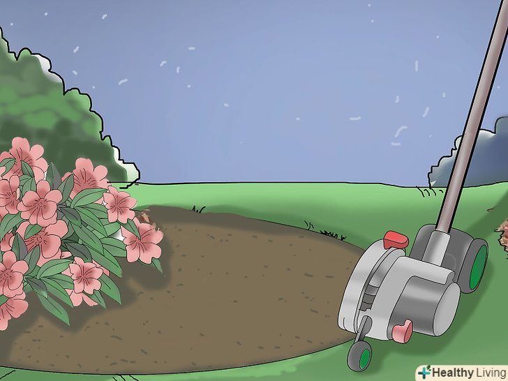Створіть кромку для мульчированной території. скористайтеся звичайною лопатою або спеціальною лопатою для газонних кромок і обережно обкопайте ту територію, яку збираєтеся мульчувати. Це дозволить створити рівну безперервну межу мульчування навколо клумб або дерев, і мульча не буде розсипатися далі окресленої для неї території (наприклад, на газон). [5]- Не відкидайте викопану землю на територію підлягає мульчування, інакше цим ви можете спровокувати проростання трави через мульчу.