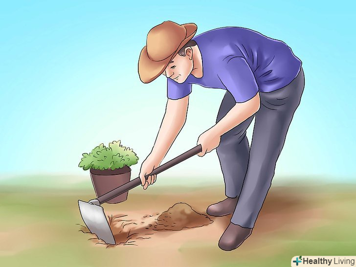 Викопайте яму. викопайте яму глибиною в розмір коренів чагарнику. Ви можете зрозуміти розмір коренів, подивившись на розмір горщика, в якому він був доставлений або в разі, якщо коріння оголені, подивіться, де закінчуються коріння на основному стеблі.- Яма по ширині повинна бути в два рази більше розміру коренів.