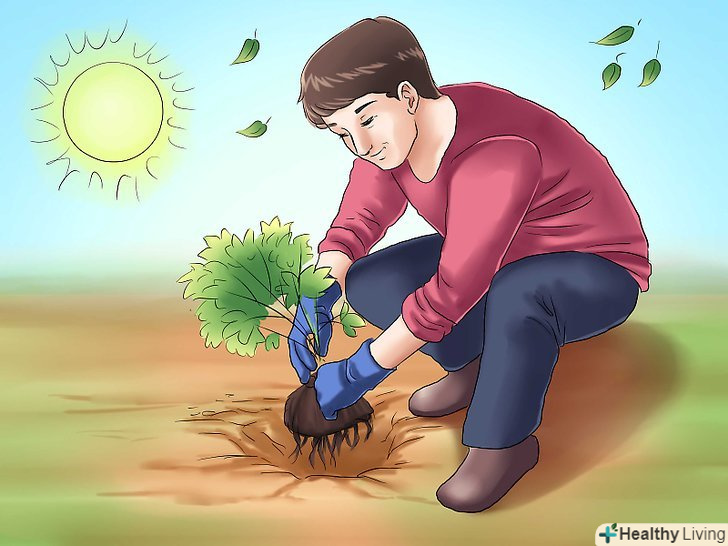 Заповніть яму грунтом і водою настільки добре, наскільки ви можете. не слід втоптувати грунт навколо чагарнику, так як це може травмувати коріння чагарнику. Досить злегка придавити грунт руками. Якщо ви не поклали добрива заздалегідь, то ви можете зробити це зараз.- Наприклад, ви можете розсипати добрива в гранулах в грунті перед тим, як остаточно засиплете верхній шар. Однак не слід вкопувати добрива занадто глибоко, інакше ви пошкодите коріння чагарнику.