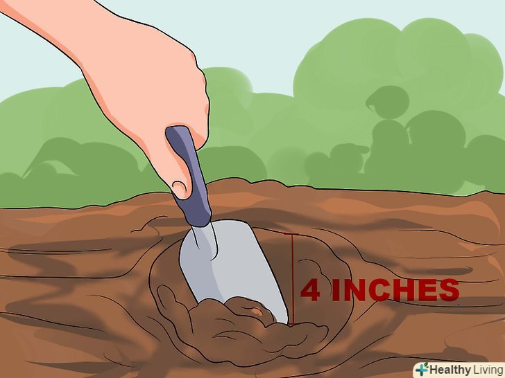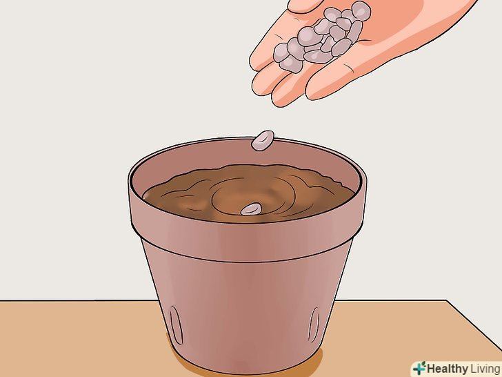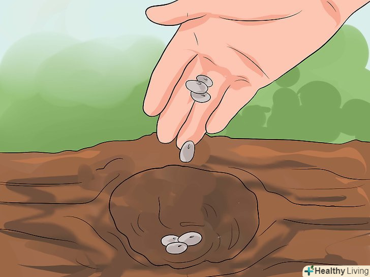 Покладіть насіння. обережно покладіть по одному насіння в кожну лунку, яку ви вирили; може бути привабливим, покласти кілька насіння відразу, але це призведе до конкуренції розсади за простір і поживні речовини, коли вони ростуть, і, можливо, призведе до загибелі рослини. Засипте кожне насіння 2.5-5 см.шаром садової землі.