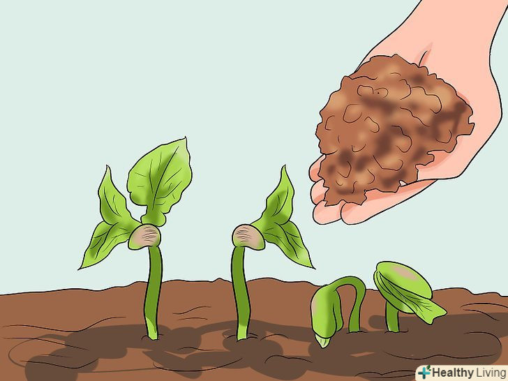 Покладіть шар мульчі після проростання насіння. Мульча-неймовірно корисний інструмент для нових садівників. Виготовлена з компосту, мульча-шар кори і поживних речовин, яку ви розміщуєте на верхній шар грунту на городі. Вона блокує ріст бур'янів і утримує вологу, дві хороші речі для нових рослин. Розкладіть шар мульчі товщиною 2.54 см.над грунтом після того як насіння виростуть 5 см. у висоту.