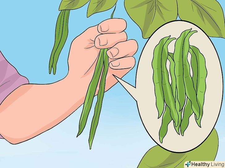 Зірвіть бобові стручки, поки стручки не розкриються. якщо ви хочете з'їсти свіжі боби, ви повинні зібрати їх, коли стручки великі і повні. У стручків не повинна показуватися форма бобів, тому що на цьому етапі вони починають висихати. Зберіть стручки, відламавши їх зверху; не рвіть їх, так як це може пошкодити рослину і запобіжить нові стручки від проростання.