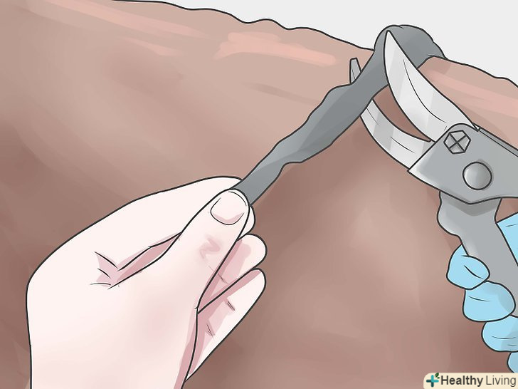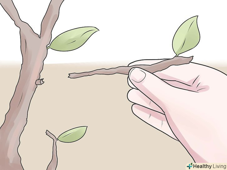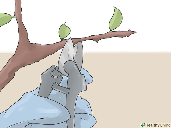 Видаляйте хворі гілки. ви повинні зрізати будь-які гілки, пошкоджені бактеріальним опіком або аналогічними хворобами, оскільки цим ви перешкодите поширенню інфекції на здорові гілки.- Бактеріальний опік особливо поширений у грушевих дерев. Листя і гілки груші уражаються, коли заражена Комаха навесні проникає в нові нирки і пагони. Щоб врятувати не заражену частину дерева, треба обрізати уражені пагони принаймні на 3 - 4 дюйма (7.6 - 10 см) нижче пошкодженої ділянки. [5]