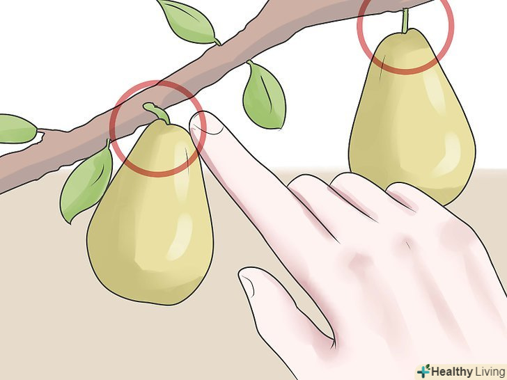 Проріджуйте плоди. це не обов'язково, але ви зменшити кількість зав'язалися фруктів.- Залишайте між зав'язаними плодами проміжок як мінімум 5 дюймів (12.7 см).