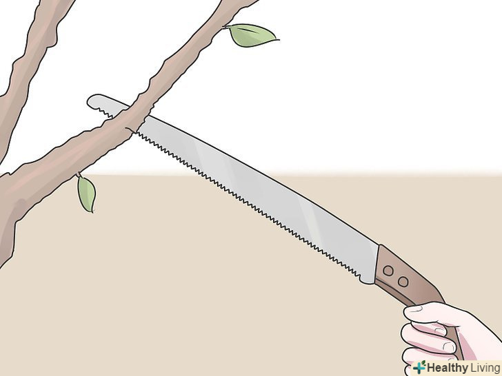 Видаліть всі гілки, що загрожують здоров'ю дерева. це слабкі, хворі, мертві, пошкоджені гілки. Також це гілки, що ростуть неправильно. [3]- Видаліть гілки, які перетинаються або труться один об одного. На таких гілках буде мало плодів, і є ймовірність пошкодження кори, що може спровокувати хворобу або залучити шкідників. Видаліть ту гілку з двох, яка менш продуктивна.