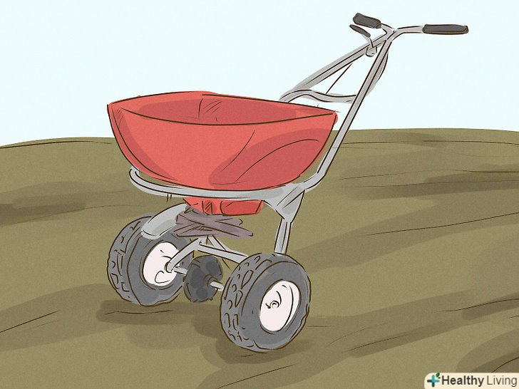 Розподіліть добавку за допомогою розкидача вапна або добрив. Якщо ви хочете розсипати зовсім небагато добавки, зробіть це руками (і не забудьте помити їх, перш ніж торкатися до чого-небудь ще!). [3] якщо ж вам потрібно покрити велику ділянку землі, це куди ефективніше зробити за допомогою розкидача добрив. [4]- Необхідна кількість добавки буде залежати від покривається площі і рівня pH грунту. Оцініть свої потреби, перш ніж визначити, скільки добавки використовувати. [5]