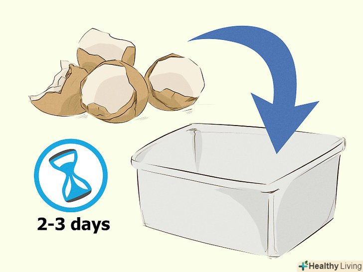 Залиште яєчну шкаралупу в порожньому контейнері на 2-3 дні, щоб вона висохла. перш ніж додавати шкаралупу в грунт, її потрібно як слід просушити. Це дозволить кальцію повністю вбратися в грунт. Насипте яєчну шкаралупу в порожню банку з-під кави або іншу суху ємність. [9]
