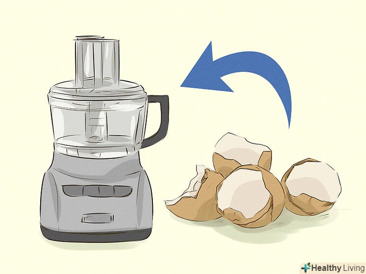 Подрібнити шкаралупу в порошок, використовуючи кухонний комбайн або блендер. у вас не повинно виникнути проблем з подрібненням сухої шкаралупи. За консистенцією порошок повинен бути схожим на мелену каву або борошно. Чим краще ви подрібніть шкаралупу, тим ефективніше грунт поглине кальцій. [10]