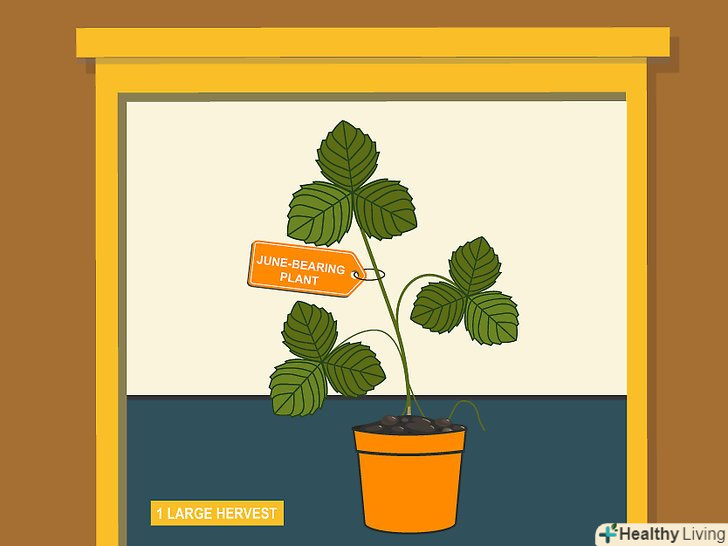 Виберіть ранній сорт суниці, який плодоносить в червні, якщо хочете збирати один великий урожай в році. Ранні сорти приносять рясний урожай, проте вони плодоносять лише один раз на рік, в червні. Придбайте такий сорт, якщо ви збираєтеся консервувати або заморожувати суницю. [2]- Є різні сорти плодоносної в червні суниці, в тому числі «сенека», «Кімберлі», «Ельсанта». Попросіть працівника магазину або розплідника рослин порекомендувати вам відповідний для вашої місцевості сорт.