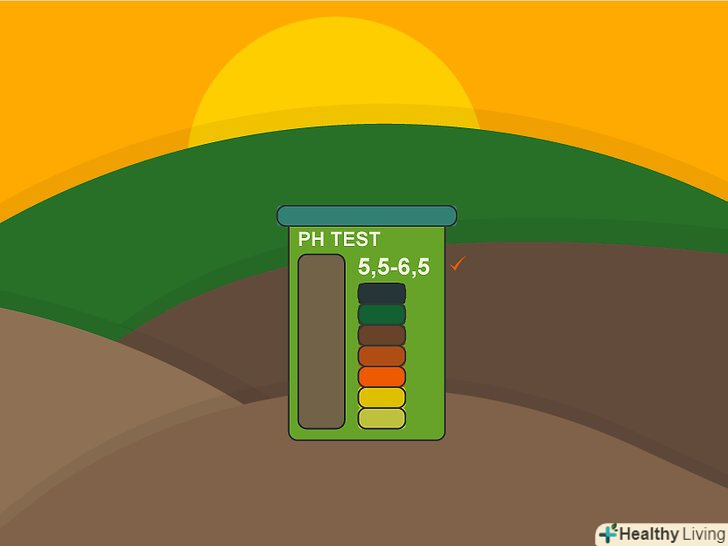 Пошукайте грунт з рівнем pH між 5,5 і 6,5. придбайте в магазині товарів для саду та городу набір для перевірки кислотності грунту. Дотримуйтесь доданих до набору інструкцій, щоб визначити рівень pH . Грунт повинна бути злегка кислою. [7]- Якщо грунт має невідповідний рівень pH, його слід виправити. Якщо рівень рН занадто низький, додайте в грунт вапно або трохи доломітизованого вапняку. Якщо ж рівень pH занадто високий, додайте сірку або торф'яний мох (сфагнум).