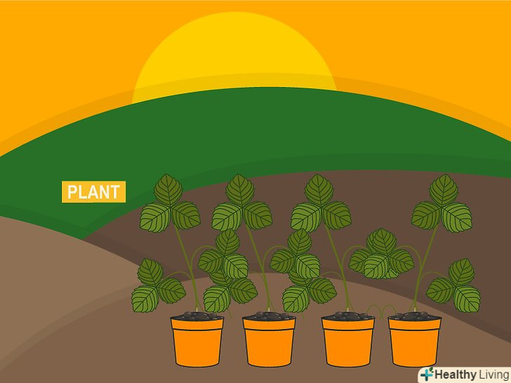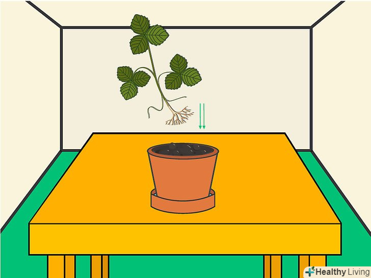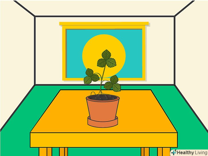 Поставте горщики в освітлюване сонцем місце. суниці щодня потрібно 6-10 годин прямого сонячного світла. Виставте горщики на ганок, в сад або на балкон, щоб рослини отримували достатньо сонячного світла. Взимку горщики можна заносити в приміщення і ставити біля освітлюваного сонцем вікна. [16]- Якщо всередині приміщення суниця не отримує достатньо сонячного світла, спробуйте поставити її під лампу для рослин.