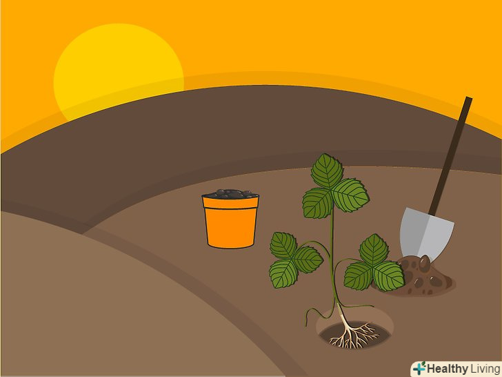 Виберіть освітлюваний сонцем і добре дренований ділянку в саду. пошукайте місце, в якому суниця буде висвітлюватися сонцем 6-10 годин на день. При цьому грунт повинен добре вбирати вологу. Не саджайте суницю там, де застоюється вода. [5]- Щоб перевірити, чи добре грунт вбирає вологу, вирийте ямку 30х30 сантиметрів і заповніть її водою. На наступний день знову залийте в ямку воду і перевірте, як довго вона вбирається. В ідеалі рівень води повинен знижуватися на 2,5-7,5 сантиметра на годину. [6]