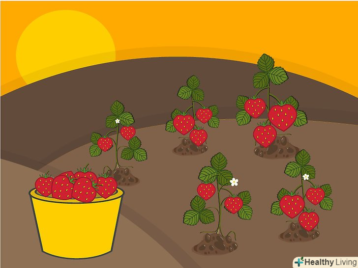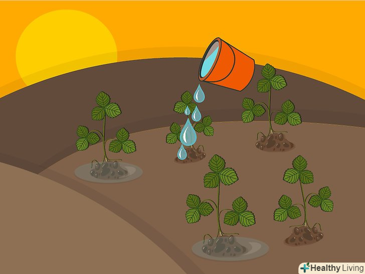Регулярно поливайте суницю. їй потрібно близько 2,5 сантиметра води в тиждень. Поливайте підставу рослин. Не лийте воду на ягоди і листя, так як це може привести до розвитку грибка і гнилі. [17]- Щоб приблизно оцінити кількість необхідної води, виходите з того, що на кожні 2,5 метра рослин потрібно приблизно 20 літрів води.