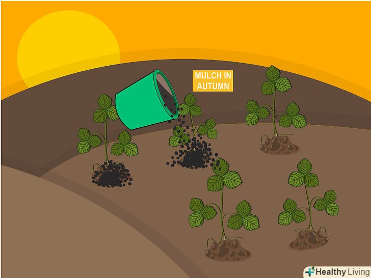 Додайте восени мульчу, щоб захистити коріння від морозів. розкладіть мульчу навколо підстав стебел. Можна використовувати солому, хвою або деревну стружку. Навесні пересипте мульчу на проміжки між рядами, щоб захистити грядки від бур'янів. [18]