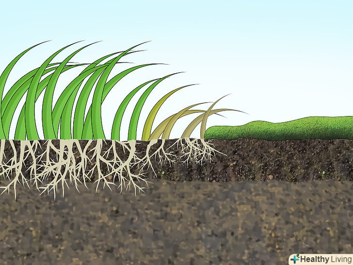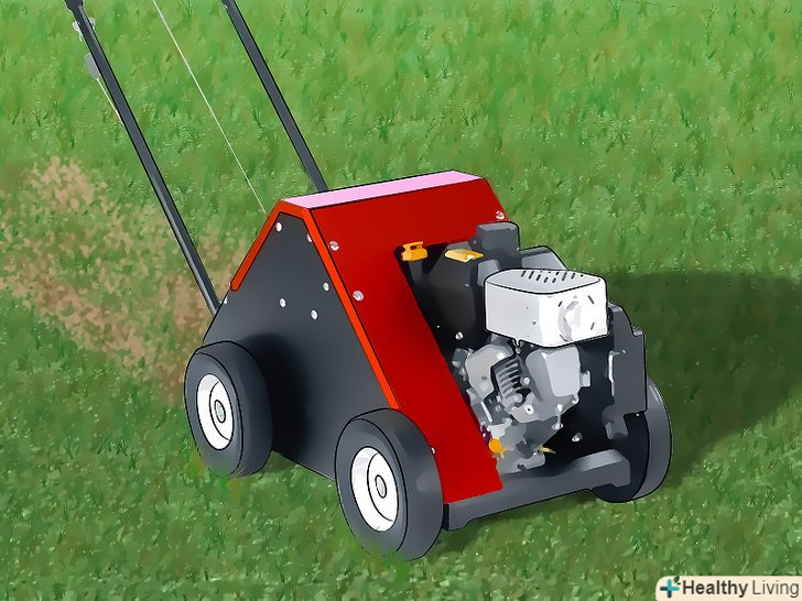 Аэрируйте область. з часом ваш газон може стати занадто ущільненим для надходження повітря, води і добрив до коріння трави. В результаті трава може псуватися і на її місці виростає мох. Регулярне аерування допомагає вам контролювати і не допускати це.- Орендуйте, запозичте або купіть аератор для обробки вашого газону. Ця машина висуває ряд порожнистих зубців в газон, викопуючи невеликі ділянки грунту, менше ніж 2,5 см в ширину.
