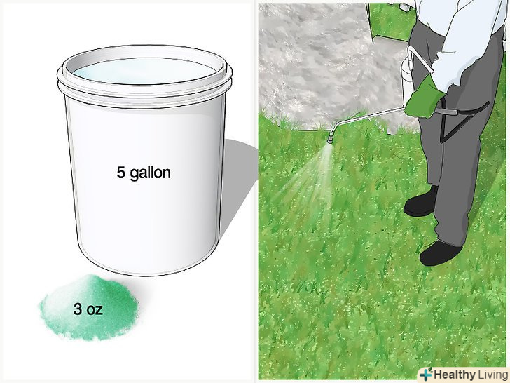 - Розпиліть 5 галонів (20 л) суміші на площу більш ніж 305 кв.м. суміш повинна складатися з 3 унцій (90 мл) сульфату заліза на 5 галонів (20 л) води.