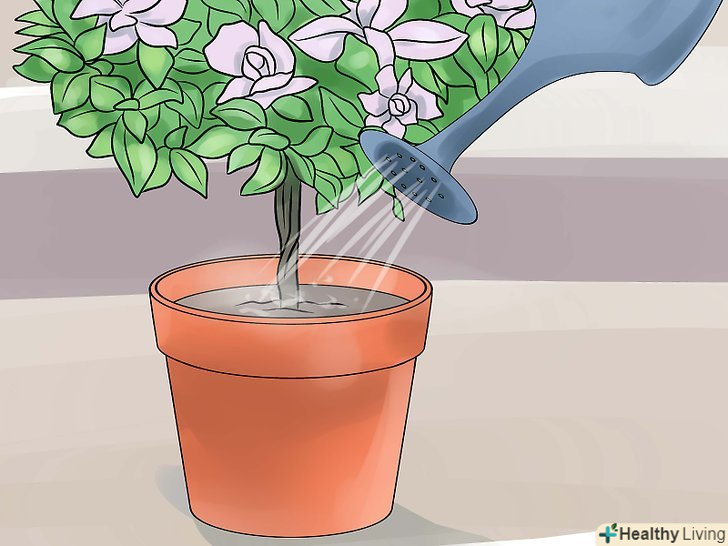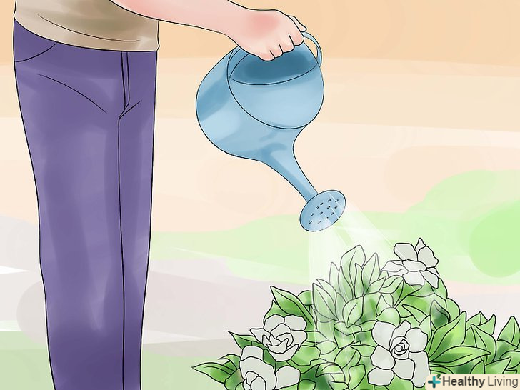 Поливайте Гарденію в один і той же час щотижня. кімнатні гарденії потрібно поливати один раз в тиждень. Поливайте рослину вранці щотижня. Поливайте коріння, не листя, щоб сонце не спалило рослину.