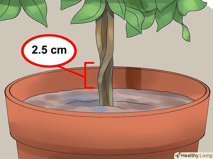 Якщо грунт просіла нижче кореневого клубка, додайте більше грунтової суміші. між краєм горщика і грунтом має бути близько 2.5 см простору.