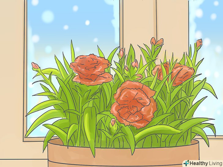 Захистіть гвоздики від морозу. квітучі круглий рік гвоздики потребують захисту від морозу. Ви можете вирощувати їх у парнику або в плівковій теплиці, але для них життєво важливо підтримувати температуру вище 45F, тому, можливо, вам знадобиться джерело високої температури навіть в теплиці. Звичайно, ви можете також вирощувати їх в якості кімнатних рослин.