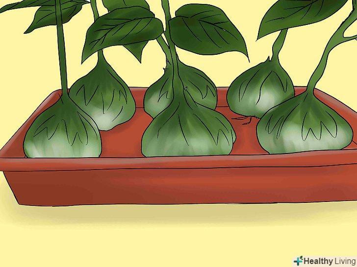 Покладіть цибулини на піддон (піднос), і дайте їм просохнути протягом декількох днів. переконайтеся, що цибулин достатньо місця на підносі, щоб повітря могло вільно циркулювати. Прохолодне темне місце, як сарай або гараж, найкраще підходить для просушування цибулин.- Не заносьте цибулини для просушування в опалювальний будинок, так як різкий перепад температури може нашкодити їм. Крім того, цвіль може швидко прорости в теплому середовищі.