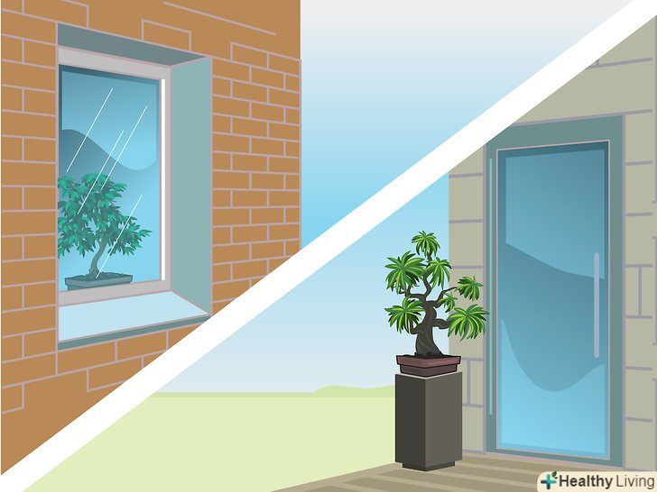 Визначтеся з тим, де ви будете вирощувати бонсай: в приміщенні або на вулиці. Потреби дерев бонсай, які ростуть в приміщенні і тих, що ростуть поза ним, можуть істотно різнитися. Як правило, всередині приміщення суші повітря і доступ сонячного світла істотно обмежений, так що вам доведеться вибирати ті дерева, яким потрібно менше світла і вологи. Нижче перераховані деякі з найпоширеніших варіантів дерев бонсай, згрупованих по їх пристосованості до зовнішнього середовища або до приміщень: [1]- В приміщенні: фікус, Гавайський парасольку, Серісса, гарденія, Камелія, самшит дрібнолистий.