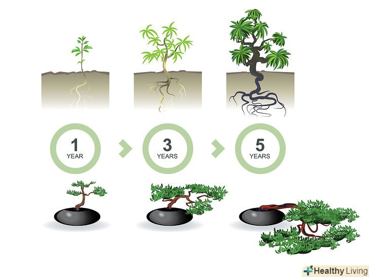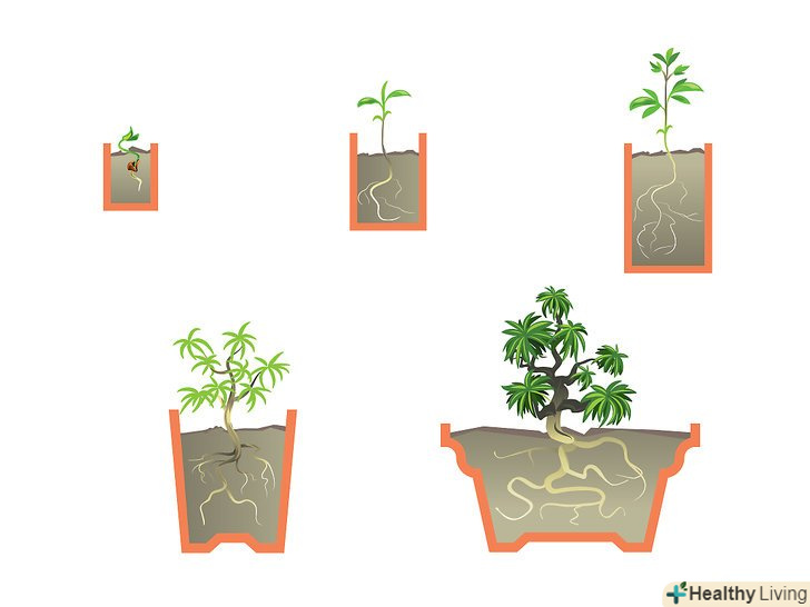 - Деякі вважають за краще вирощувати свої дерева бонсай в простих і практичних контейнерах, а потім пересаджувати їх в контейнери красивіше, коли дерево повністю виросте. Цей процес особливо зручний, якщо ваш вид бонсай дерева є крихким, так як це дозволяє вам відкласти придбання «симпатичного» горщика до моменту, поки ваше дерево не стане здоровим і красивим.