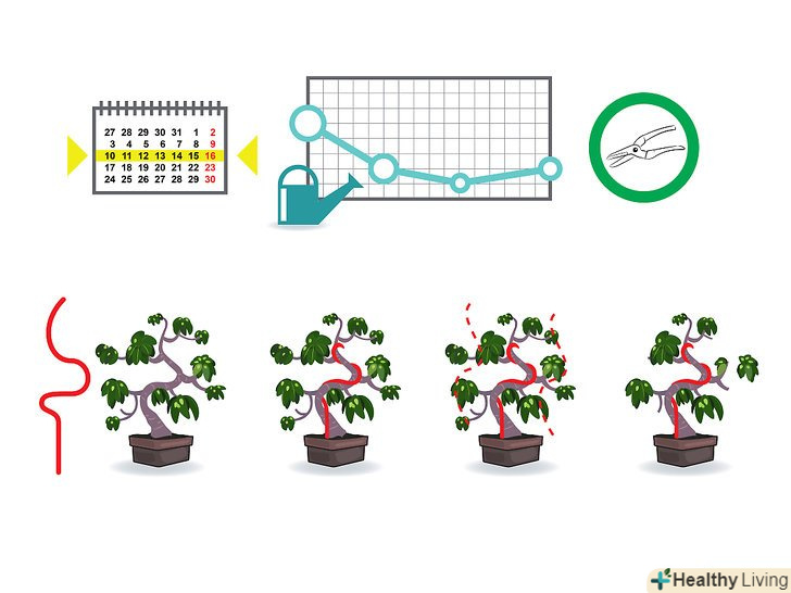Уявіть собі, яким в кінцевому підсумку стане те рослина, яке ви вибираєте. як тільки ви визначитеся з видом і розміром свого бонсай-дерева, можете відправлятися в теплицю або бонсай магазин і вибрати рослину, яка і стане вашим деревом. При виборі рослини дивіться, щоб листя або голки були здоровими і яскравого зеленого кольору, щоб переконатися в тому, що рослина здорова (однак, пам'ятайте, що листяні дерева в сезон листопаду мають різнобарвне забарвлення). Зрештою, коли ви обмежите свій пошук найздоровішими і красивими рослинами, уявіть собі, як буде виглядати кожна рослина після обрізки. Частина задоволення від вирощування дерева бонсай полягає в акуратній обрізці і доданню йому форми, поки дерево не стане точно таким – як ви хочете-це може зайняти роки. Виберіть те дерево, у якого його природна форма сама по собі піддається обрізку і/або нагадує те, що ви собі уявляєте.- Зверніть увагу на те, що якщо ви вирішуєте вирощувати саджанець, то у вас є можливість контролювати зростання дерева практично на кожній стадії його розвитку. Однак, це може зайняти до 5 років (в залежності від виду дерева), щоб бонсай виросло з паростка в повноцінне доросле дерево. [2] з цієї причини, якщо ви зацікавлені в обрізанні або наданні форми своєму дереву (щодо) негайно, то краще вам купити вже підросло рослина.