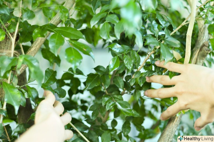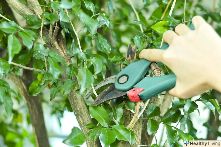 Прорідити місця з найбільшим скупченням гілок, це дозволить повітрю більш вільно циркулювати серед гілок, що є важливою умовою здоров'я дерева. гілки, що ростуть тісно, часто стають носіями грибка і залучають більше комах.- Видаліть гілки, що ростуть у бік стовбура. Вони створюють непотрібні скупчення і не є здоровими.