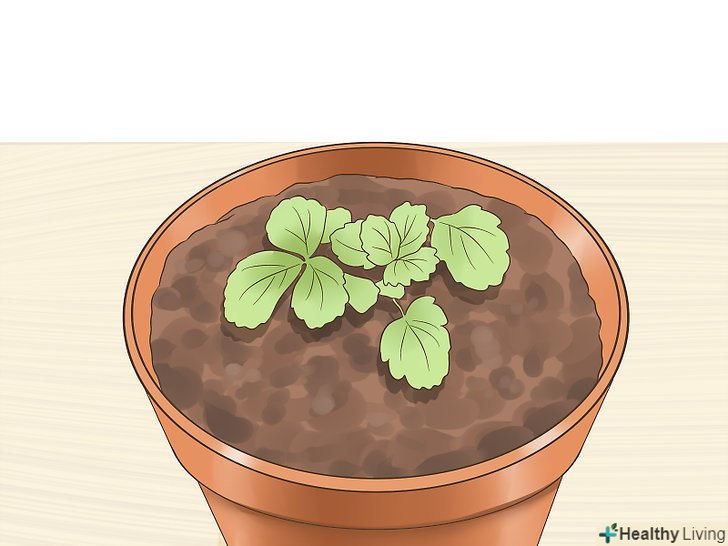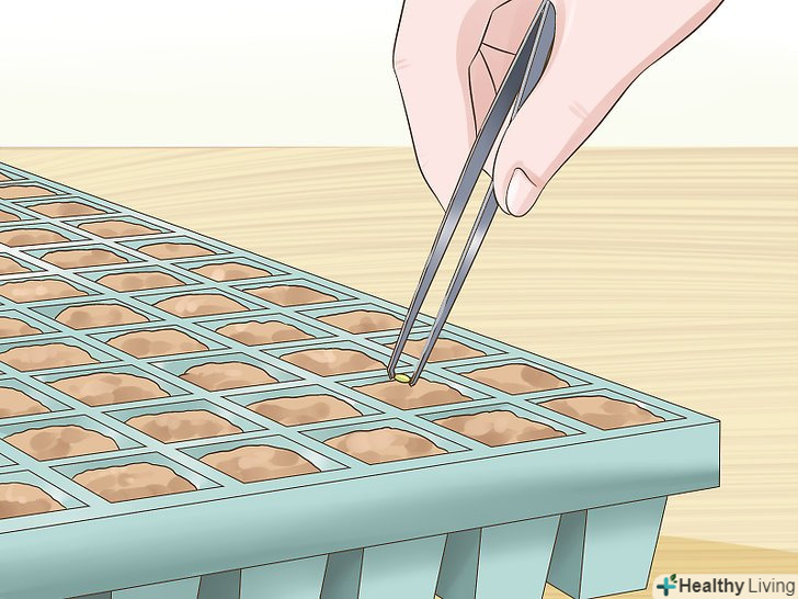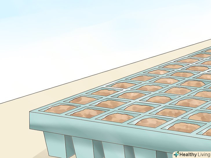 Посадіть насіння. наповніть лоток для розсади грунтовою сумішшю, так щоб вона покривала дно приблизно на 2,5 сантиметра. Полуниця воліє родючий і злегка кислий грунт. Оптимальний рівень pH становить близько 6, тому при необхідності додайте в грунт для розсади трохи сірчаного порошку. [7]- Додайте достатню кількість води, щоб грунт стала вологою, і розкидайте по ній насіння полуниці. Злегка присипте насіння зверху грунтом або торфом, так щоб на них все ж потрапляло сонячне світло. Прикрийте лоток з насінням целофановою плівкою.