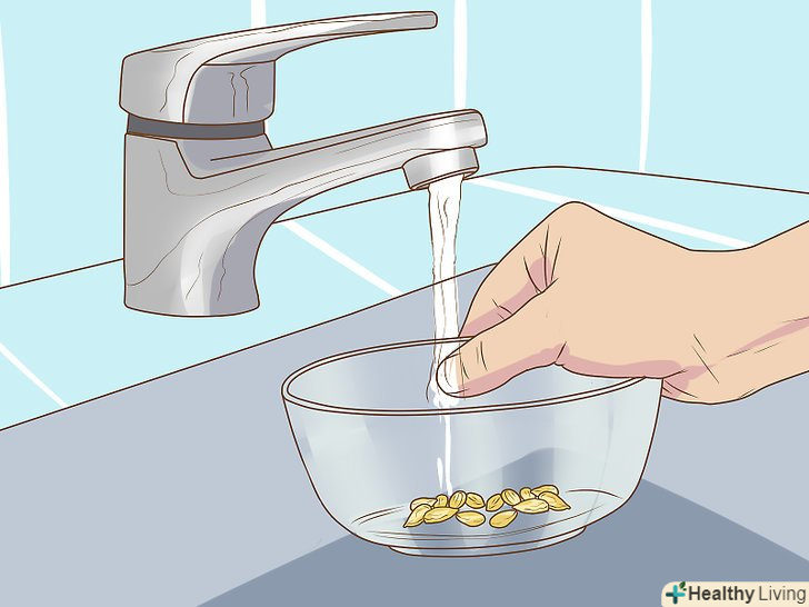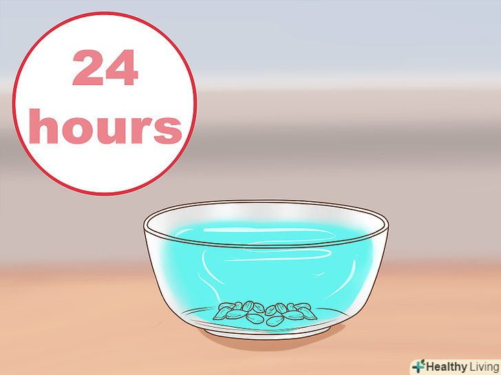 Вимочіть насіння. наповніть невелику миску чистою водою кімнатної температури. Покладіть насіння у воду і почекайте 24 години, щоб вони ввібрали вологу. Тим самим ви збільшите шанси проростання насіння, оскільки їх оболонка розм'якне. [3]- Вимочивши насіння протягом 24 годин, злийте воду і покладіть насіння на чистий рушник.