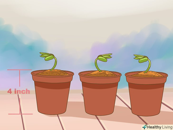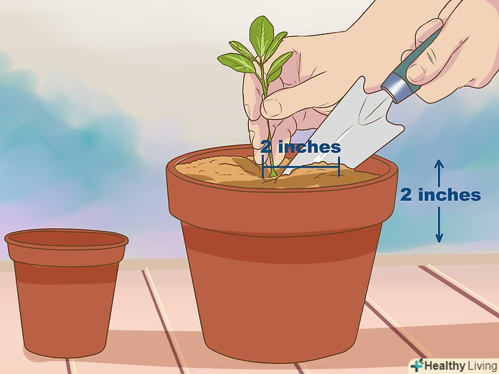Пересадіть паросток в більший горщик. засипте в новий горщик землю і зробіть в центрі невелику ямку глибиною і діаметром близько 5 сантиметрів. Стисніть стінки старого горщика або поплескайте по ним, щоб вивільнити грунт. Потім вийміть з нього земляний кому разом з корінням і пересадите паросток в новий горщик, після чого присипте коріння новим грунтом.- Відразу ж полийте новий грунт, щоб вона стала вологою.