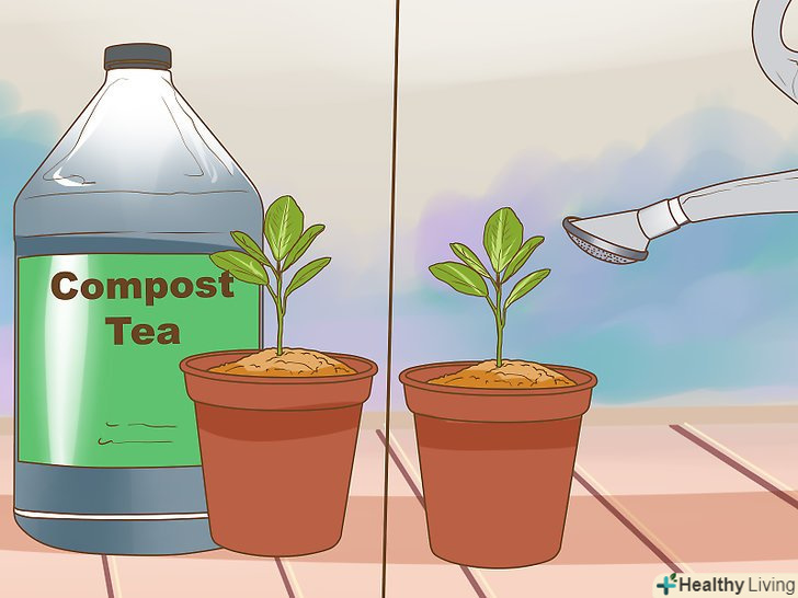 Удобрюйте і поливайте насіння в міру їх проростання. ніжним паросткам потрібно легке добриво, наприклад компостний чай . Щоб зволожувати грунт, додавайте в неї досить компостного чаю. Удобрюйте землю раз на два тижні і поливайте її раз на тиждень, або як тільки вона висохне.- Якщо грунт висихає занадто часто, апельсинове дерево зачахне. [4]