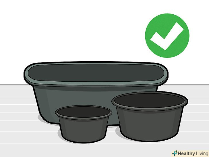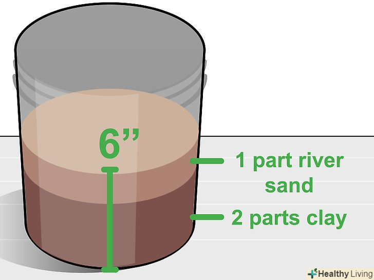 Візьміть ємність об'ємом 10-20 літрів і насипте на дно шар грунту товщиною 15 сантиметрів. такої ємності буде достатньо для зростання молодого лотоса. Чорне пластикове відро допоможе зберегти тепло, що корисно для молодих пагонів. [4]- Найкраще, якщо грунт буде складатися на 2 частини з глини і на 1 частину з річкового піску. Якщо використовувати покупну грунтову суміш для кімнатних рослин, вона спливе на поверхню після того, як ви опустите ємність в воду. [5]