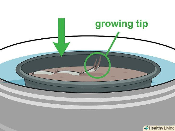 Втисніть в грунт Бульба. злегка втисніть Бульба в пісок і акуратно обкласти його камінням, щоб він не сплив на поверхню води до того, як пустить коріння. [15]- Не занурюйте Бульба в землю повністю, інакше він згниє. Верхня частина Бульби повинна виступати з грунту.