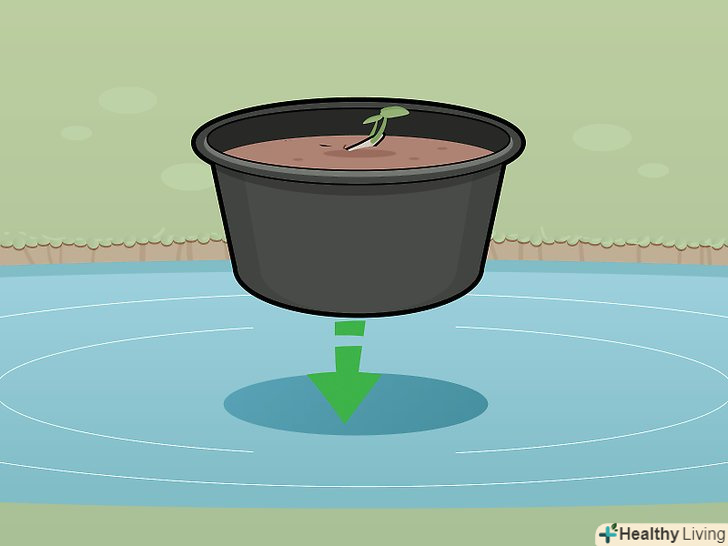 Втисніть пророслі насіння в грунт, так щоб відстань між сусідніми пагонами становило близько 10 сантиметрів. не слід закопувати насіння в землю. Залиште насіння на поверхні грунту і злегка присипте грунтом, щоб захистити їх. Вони самі пустять коріння. [8]- Можна прикріпити до нижньої частини кожного насіння по невеликому шматочку ваяльной глини — це дозволить трохи погіршити їх, щоб вони не спливли. Коли ви опустите ємність у воду, легкі насіння можуть відірватися від грунту і спливти на поверхню води.